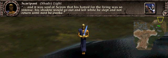 Once wave 6 is dead, move across the water to the place where Scaripant is waiting. He is shown to the left. He has apparently been severely wounded already (a good thing), so you should be able to kill him without too many losses. The thing to remember about Shades is that they will save their powerful magic for groups of units, so don't lat any large groups get in his range. He will choose to fight individuals in hand-to-hand combat.